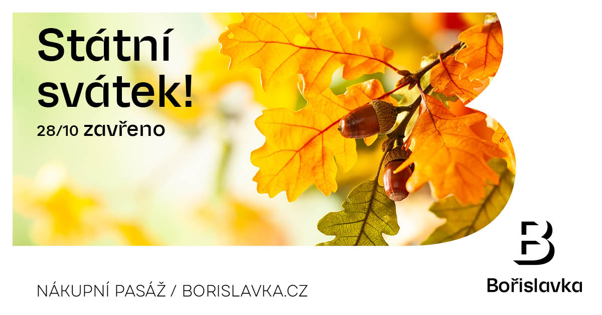 rádi bychom vás informovali, že v úterý 28. října 2025, kdy slavíme Den vzniku samostatného československého státu, bude naše obchodní centrum uzavřeno.